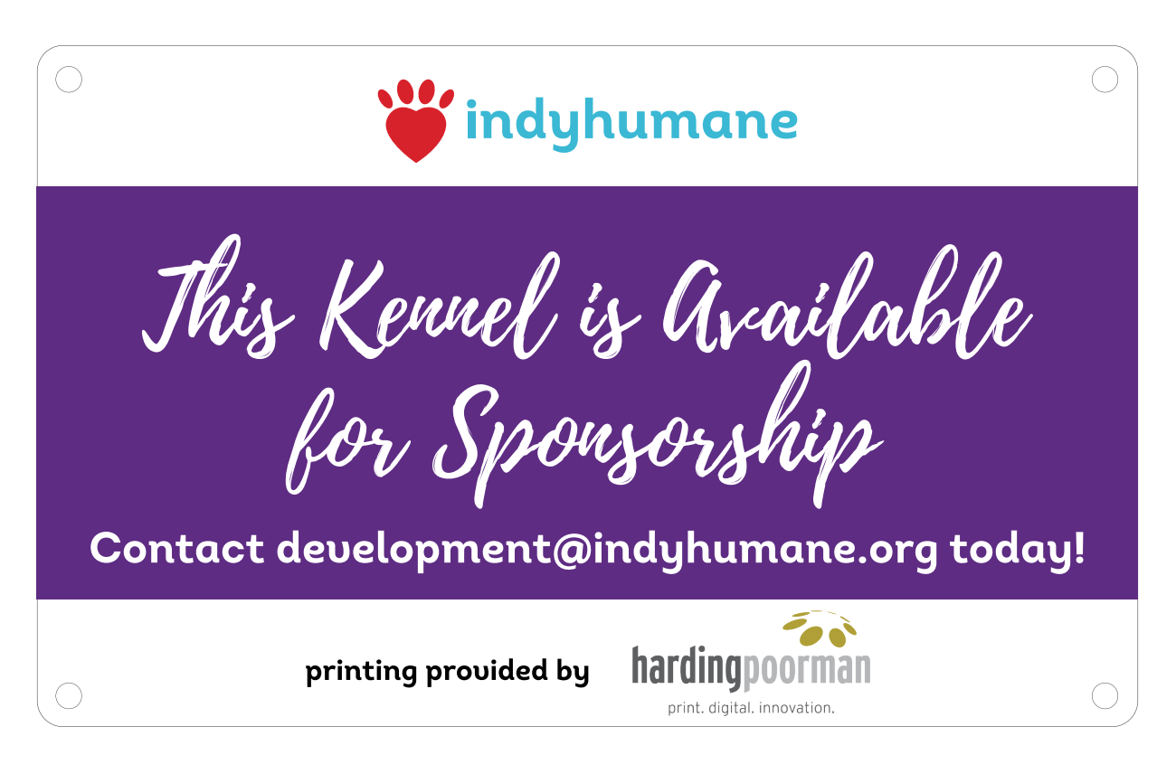 Beginning at $2000, kennel sponsorships offset the direct expenses for homeless dogs and cats who call IndyHumane their temporary home. Your gift helps to provide food to fill their bellies, medical supplies to heal them, soft blankets to comfort them, behavior enrichment to keep them happy, and cleaning supplies to prevent illness.
